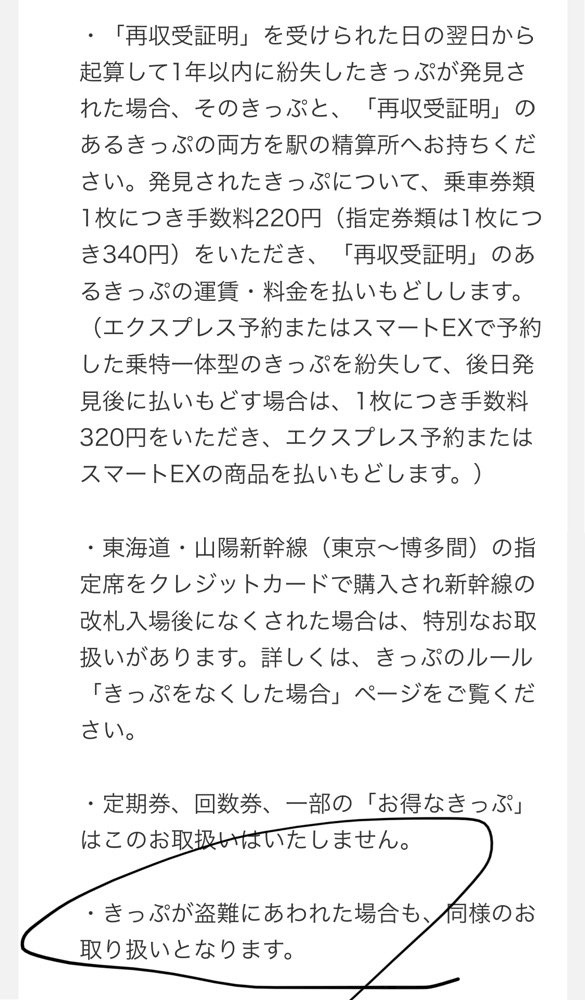 新幹線🚅の切符は盗難だろうが紛失だろうが