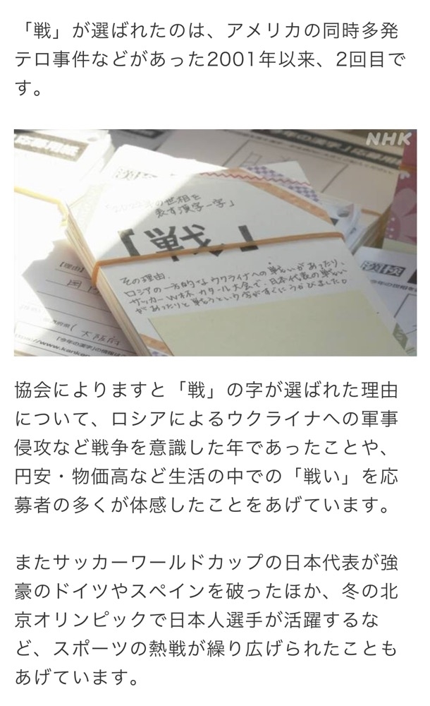 今年の漢字は「戦」