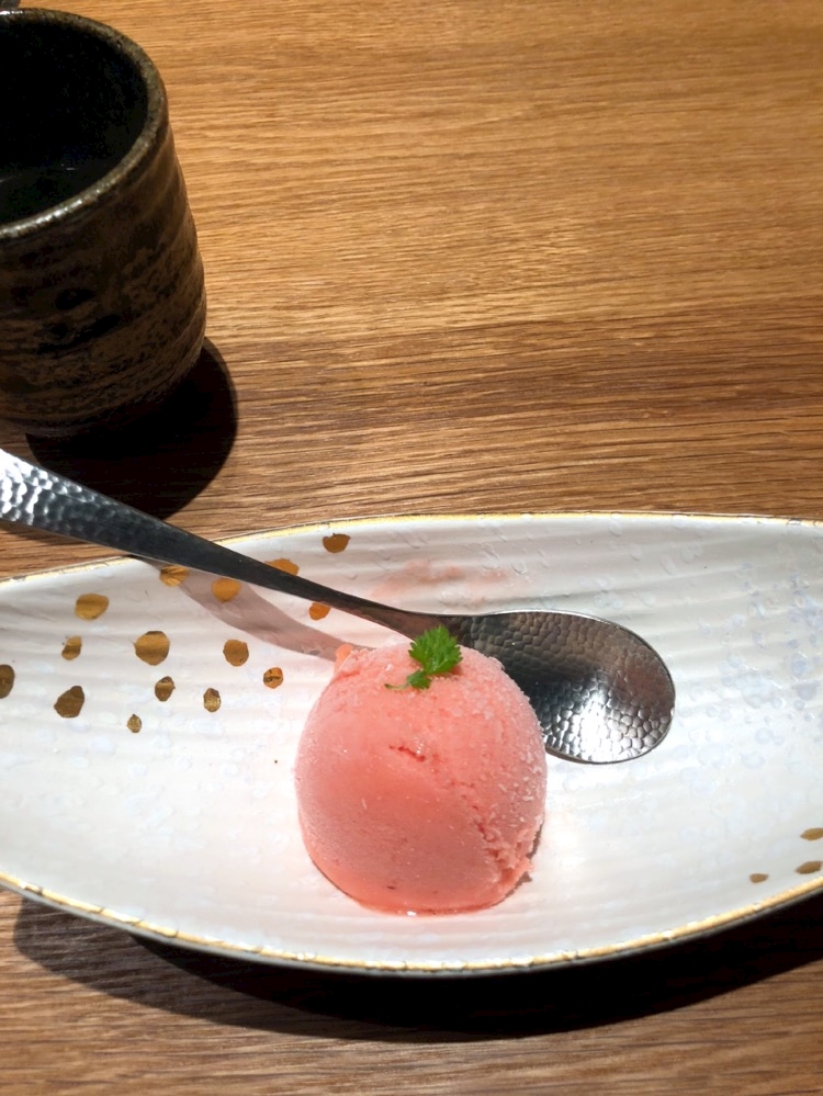 いちごシャーベットで〆