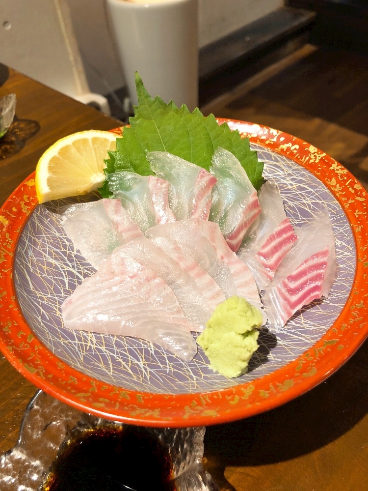 石鯛🐟の刺身を塩を食べながら
