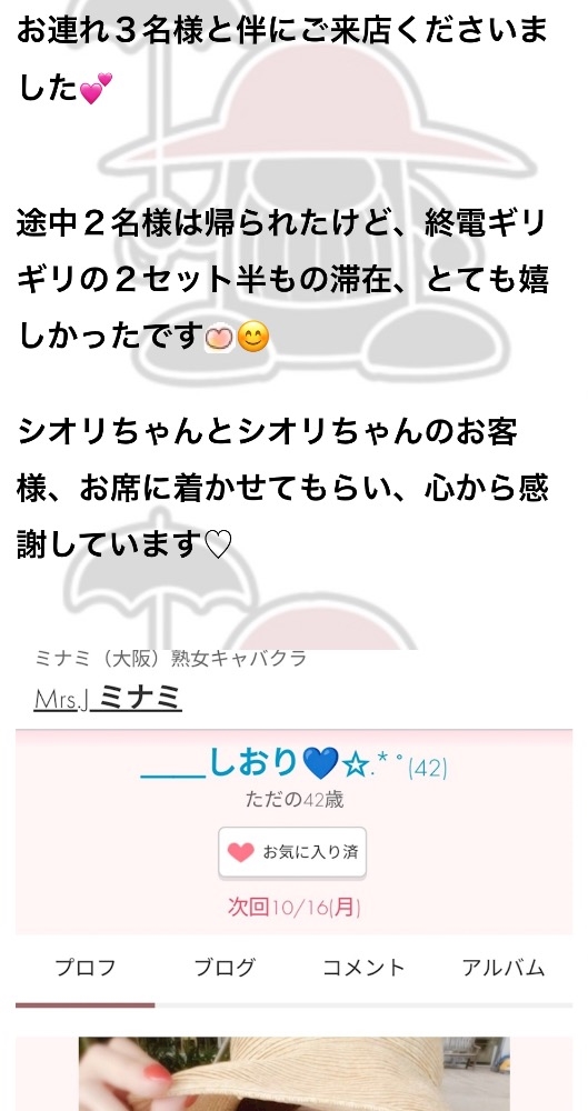 この前、しおりのお客様が御来店の時にどうしても出勤できなくて