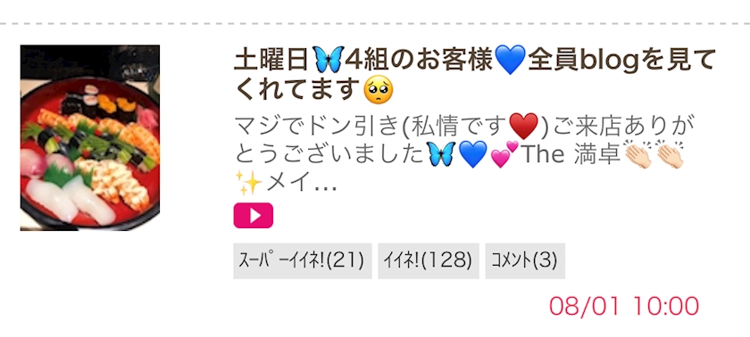 何人もの方からお声貰えました(ヘルプについてくれた時にお客様に話してくれたキャストさんも多かったです)