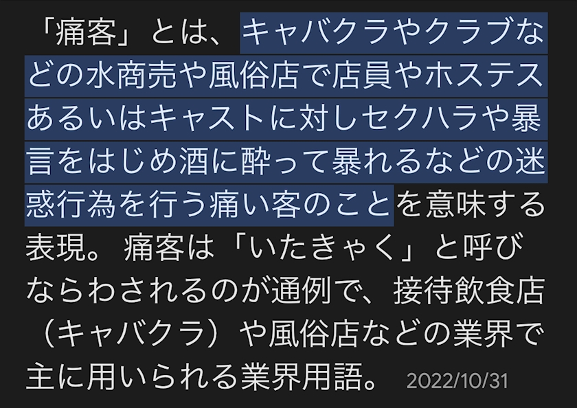 キャバクラ用語【痛客】