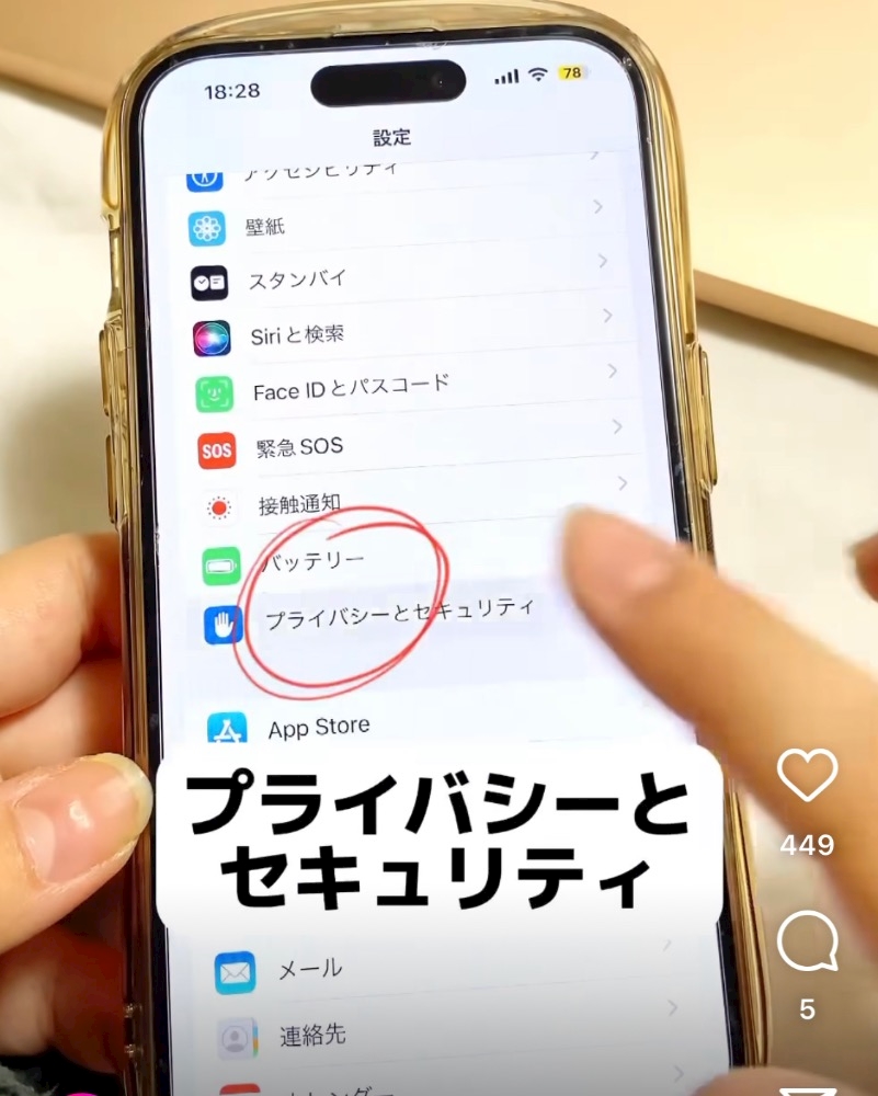 プライバシーとセキュリティ押すと