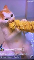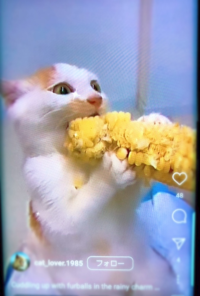 猫ちゃんがトウモロコシ🌽食べてるやんかぁー!!