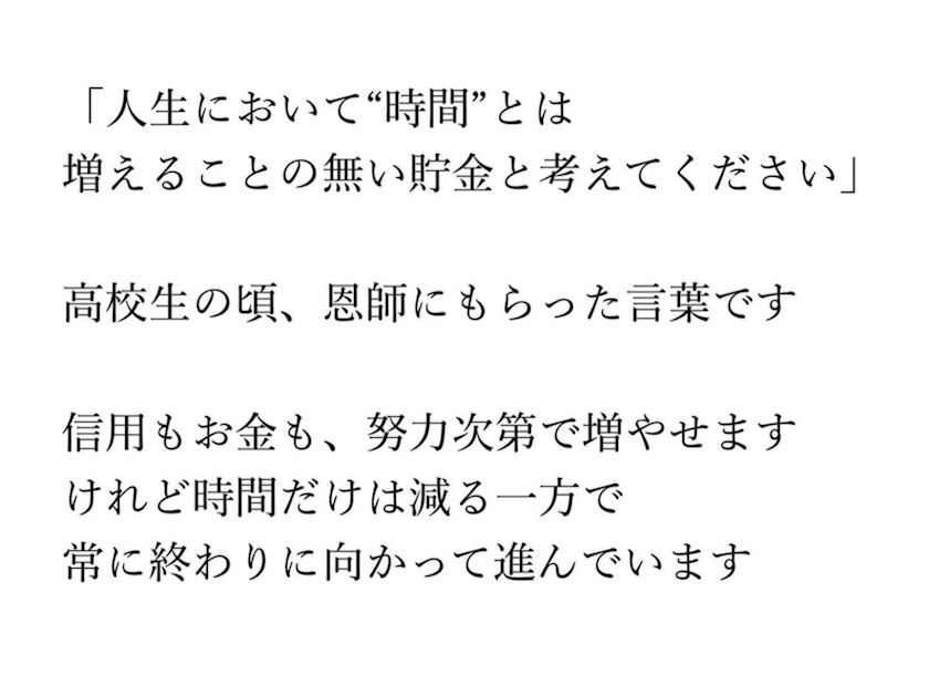 時間とは増える事のない貯金