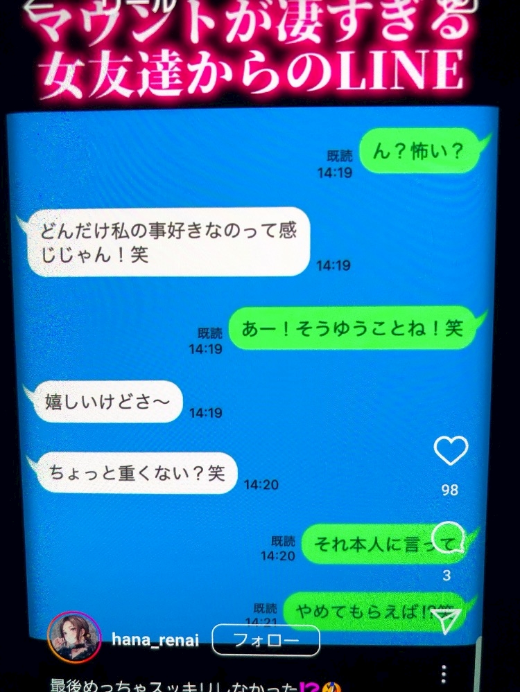 ③これマウンティングってやつやんな♥️めっさレベル低いからオモロいや♥️もっと笑かしてや!え?まさかこれだけ?まだあるやんな?と煽りまくる