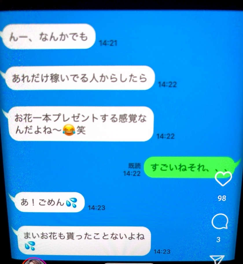 友達に花も貰ったことないよねとか書いちゃうこの女