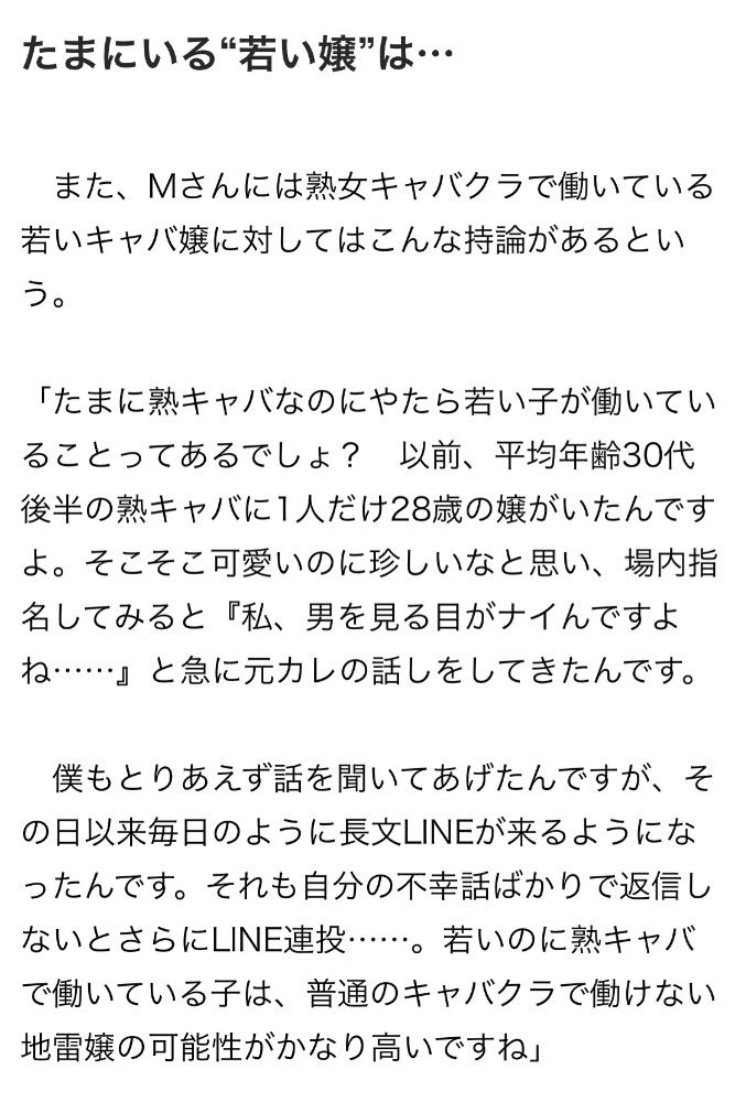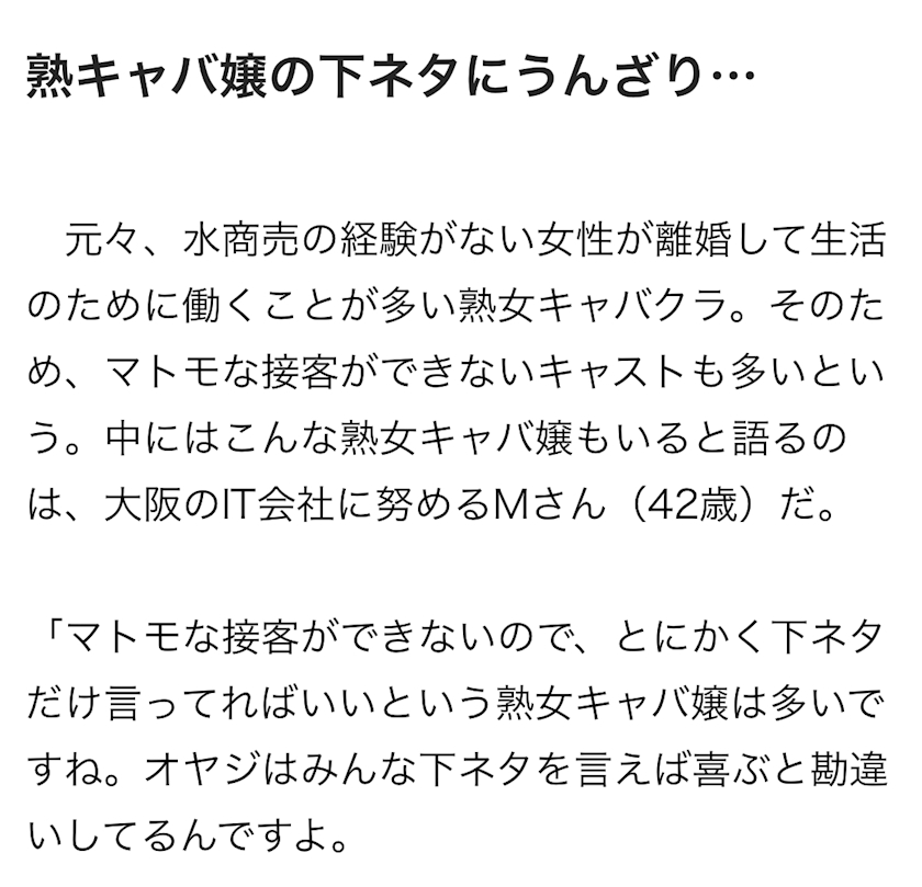 お客様側の熟女キャバクラのクレーム記事がありました
