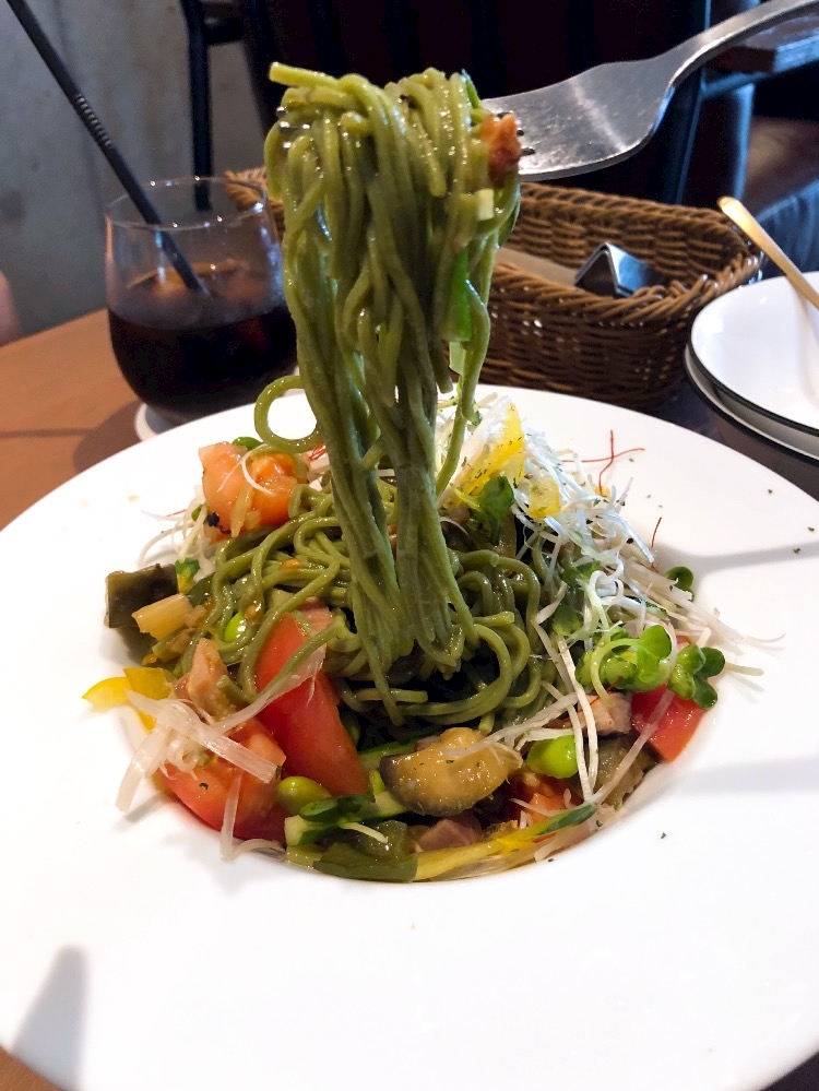 茶そばの冷製ペペロンチーノ🍝