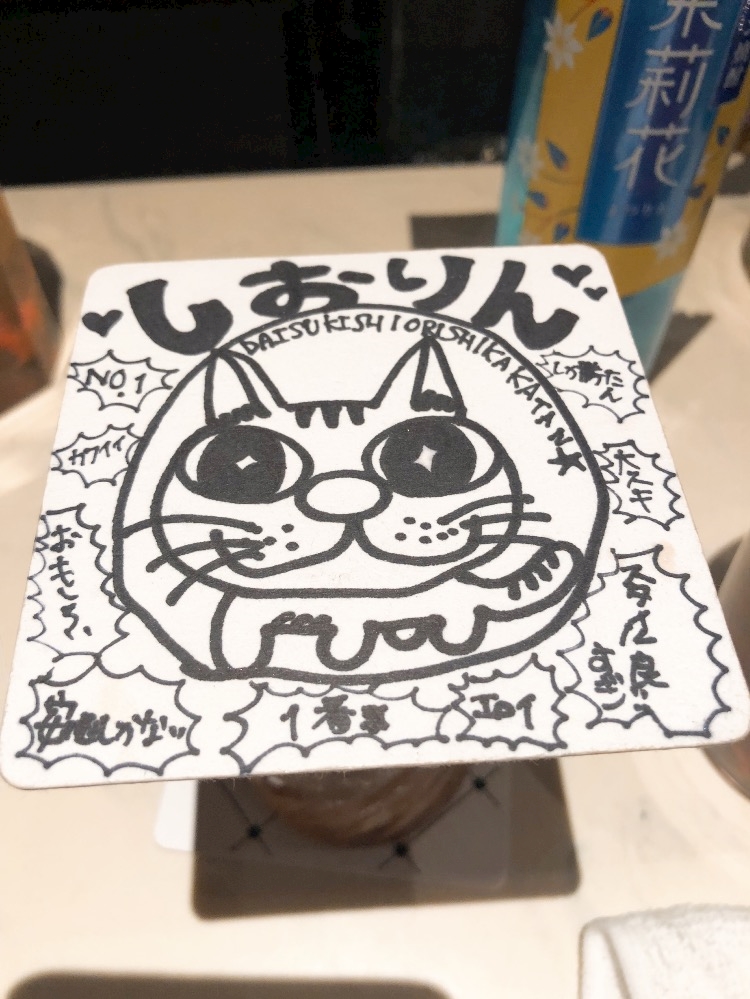女性が逢いに来てくれて書いてくれたコースター