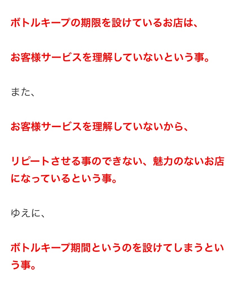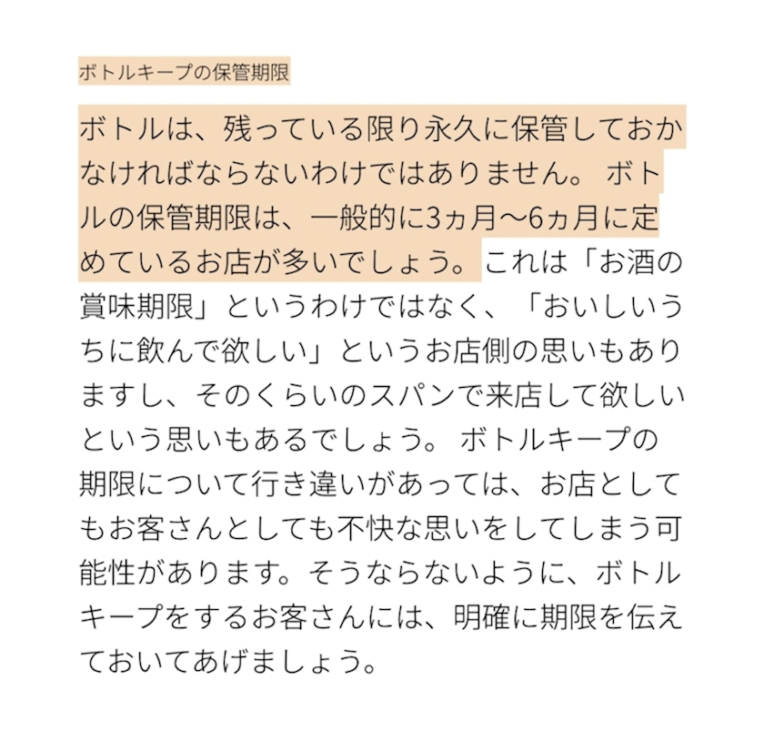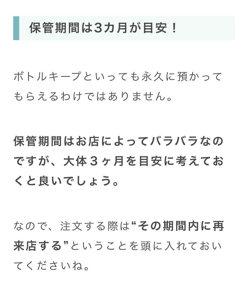 ボトルのキープ期間