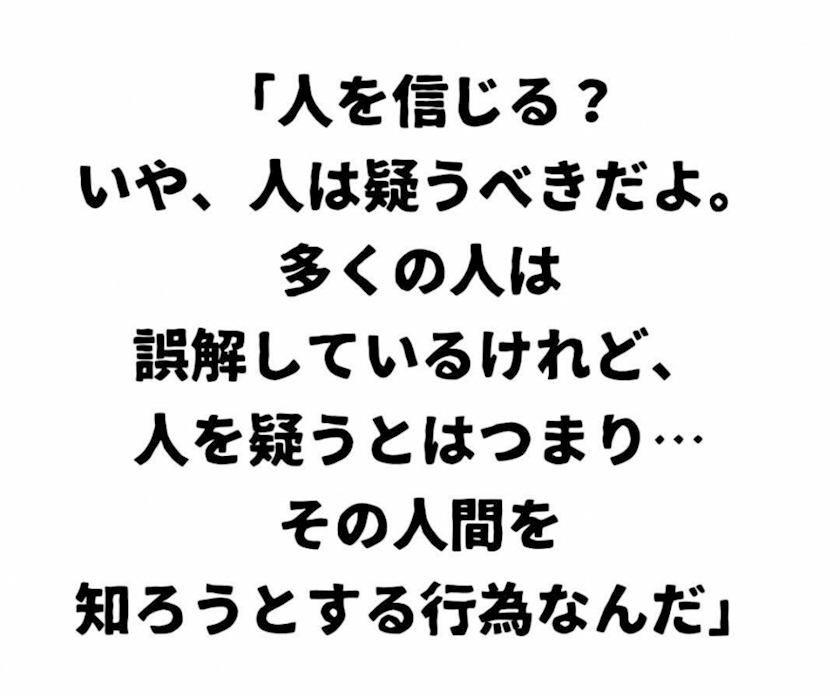 でも疑うから信頼関係もできるんよね