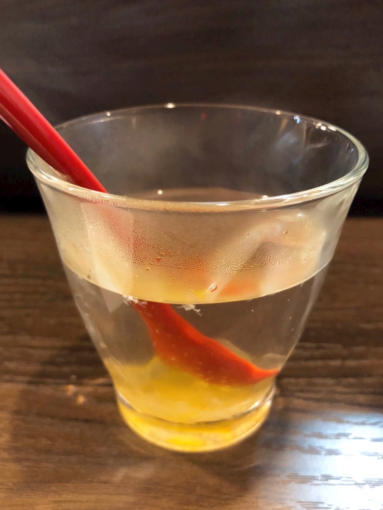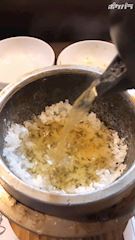おこげにコーン茶を注いで