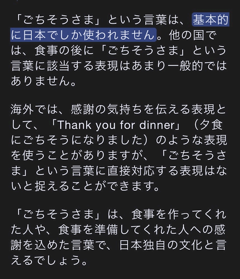 つまり「ごちそうさま」は