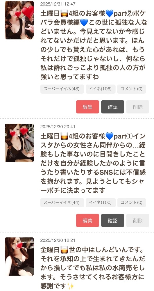- 2026年 1月2日初出勤🍷3組のお客様💙part① 私は目標作らない。自分との戦い自分との争いはその時に決める。だって戦わないといけねー自分が強者なんですもの。足りない自分でいい。そのままで好きになって貰えてるのが喜びです