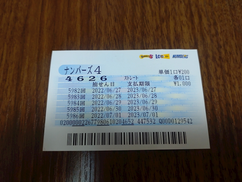 今回は4ケタで、令和4年6月26日だそう…
