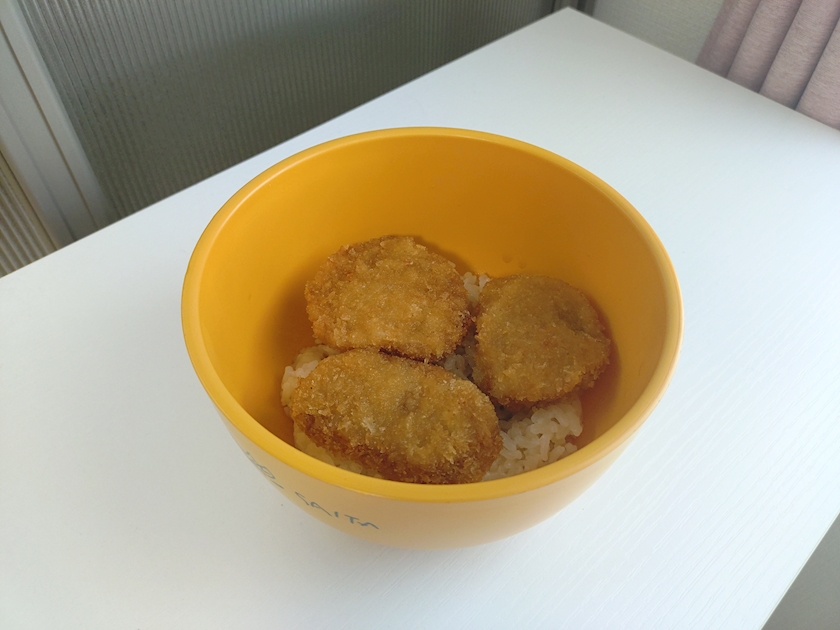 容器が黄色だからなんか変だけど、ヒレカツ丼です。