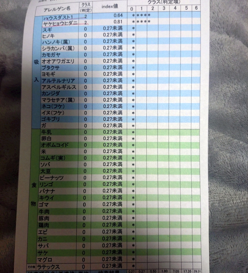 この間、病院でアレルギー検査しました。