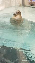 立って泳いでるアザラシ君。