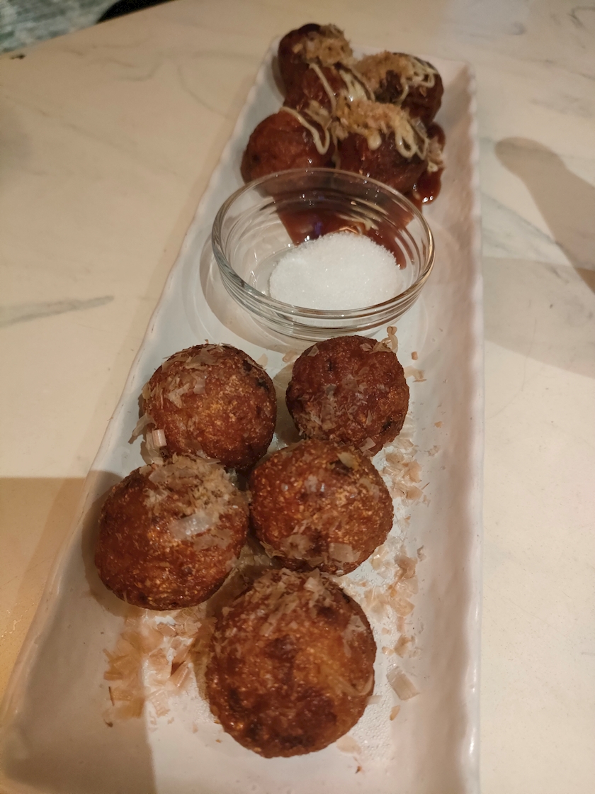 こちらのお席でも、揚げたこ焼きとオツマミをいただきました。