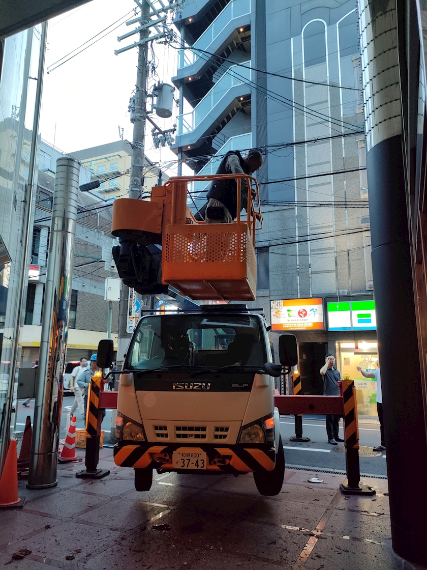 今日、入店前のパピヨンビルに、高所作業車?が来てたよ~