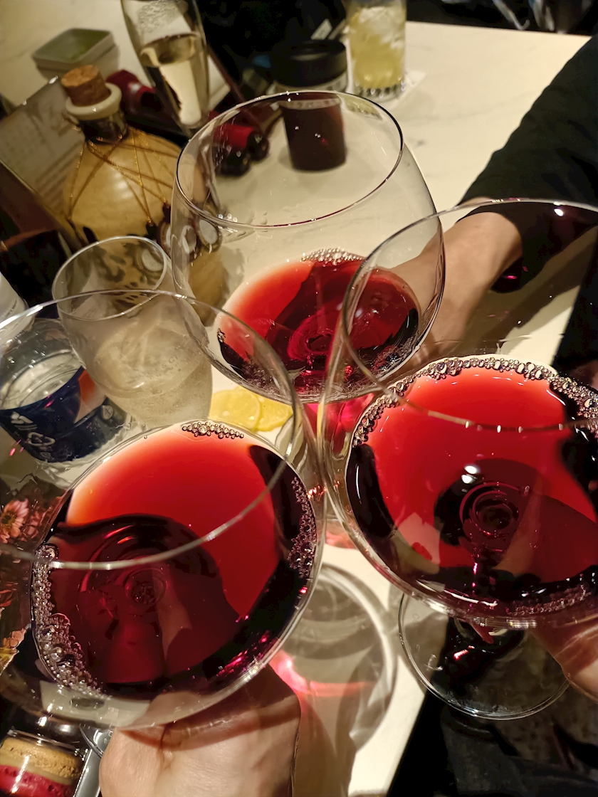 バレンタインのお返しで、アクビが着席してから赤ワインを入れてくれて⤴🍷