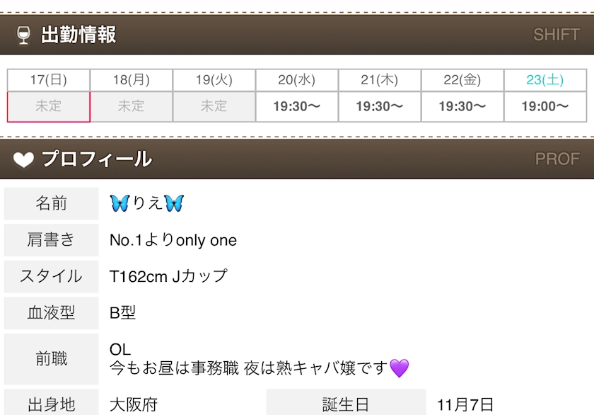シフト - 🦋りえ🦋 - 大阪 熟女キャバクラ・Mrs.J ミナミ