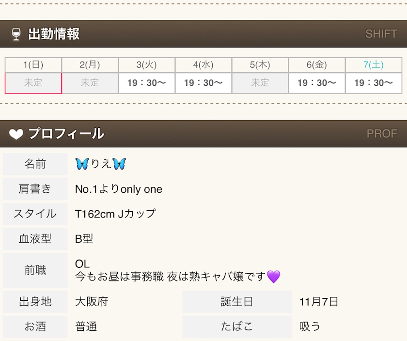 シフト - 🦋りえ🦋 - 大阪 熟女キャバクラ・Mrs.J ミナミ
