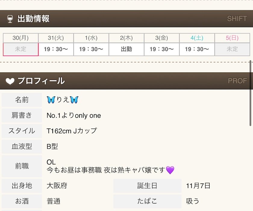シフト - 🦋りえ🦋 - 大阪 熟女キャバクラ・Mrs.J ミナミ