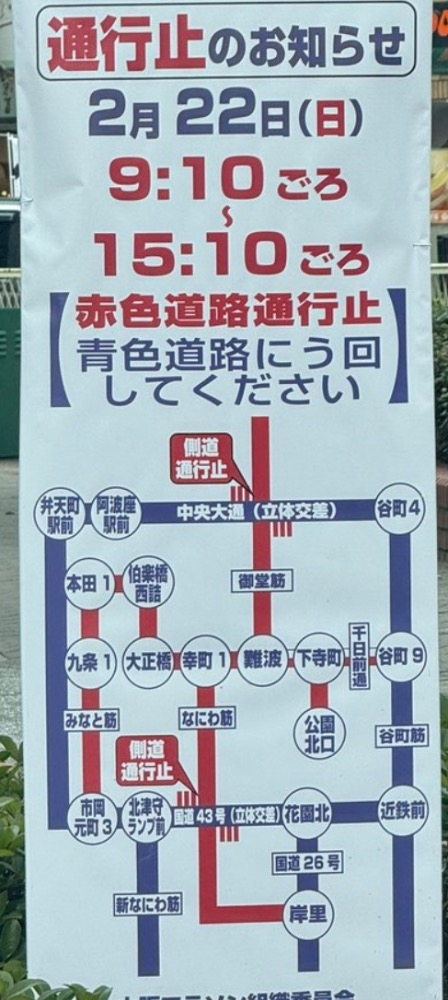 22日はわたしのお誕生日なので、御堂筋周辺が通行止めです😘