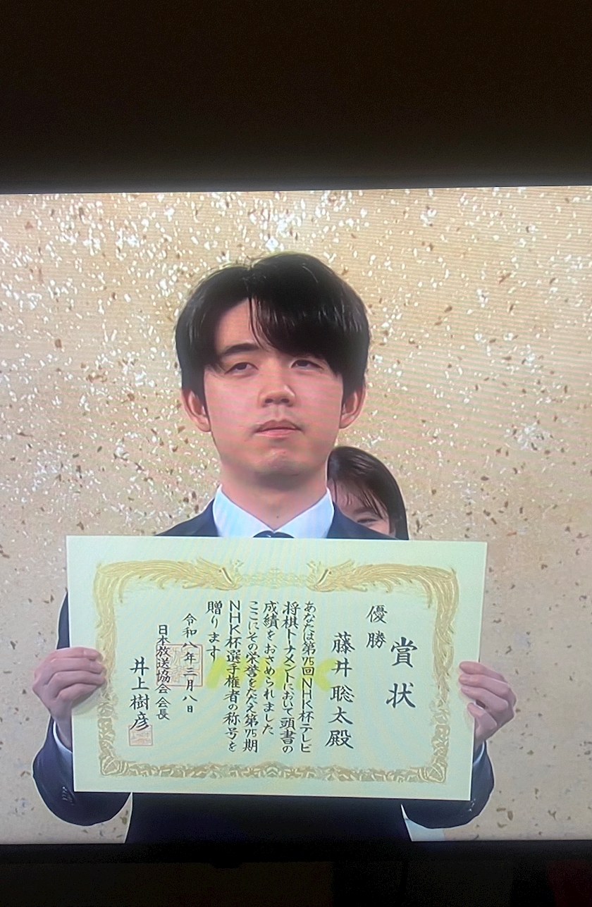 たまたま見た将棋、NHK杯🏆前半挑戦者増田八段が優勢でしたが、終盤怒涛の巻き返しで見事優勝した藤井棋王!