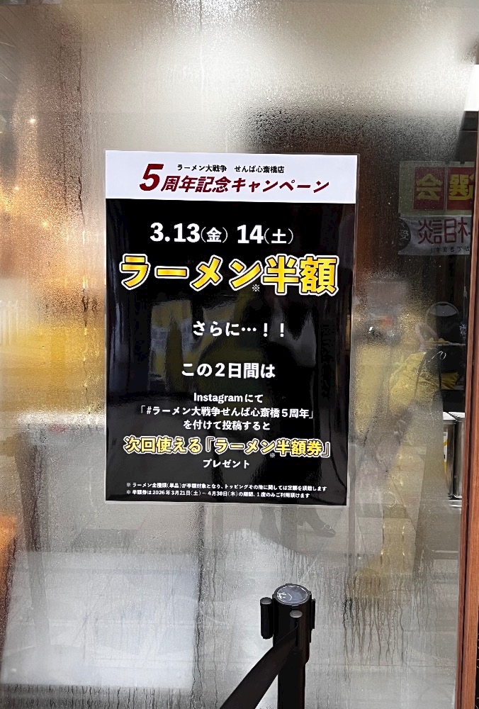 3月13日・14日の2日間はラーメンが半額🍜