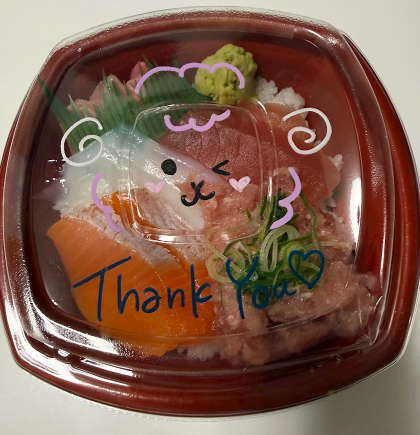 日曜日に出前で頼んだら蓋に可愛い絵をかいてくれた🤍⟡.⋆