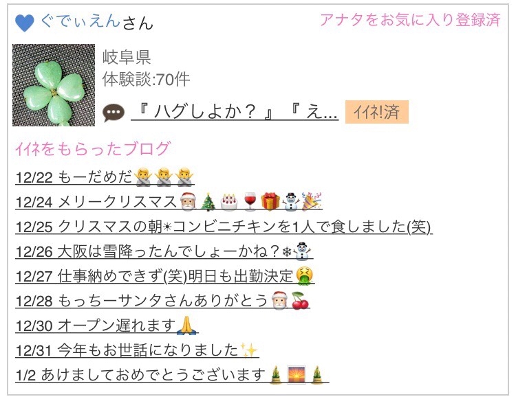 他にもたくさんの会員様、キャスト様から、イイネいただいて、今年もハッピースタートさせていただきました