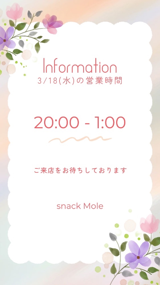 ★3/18(水) Mole出勤情報★20時オープン★ - Mole ★ information - Mole・モレ - ミナミのスナック