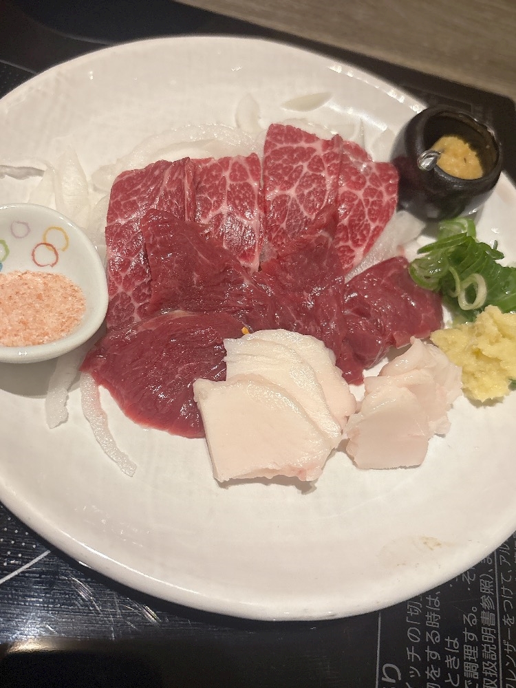 馬刺しは九州の甘い醤油がまたまたいいですねぇ🤤
