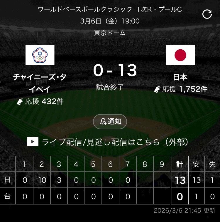 昨日の台湾戦勝てて良かった🥺