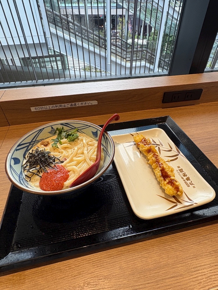 明太クリームうどん食べました⊂( ᴖ ̫ᴖ)⊃♩