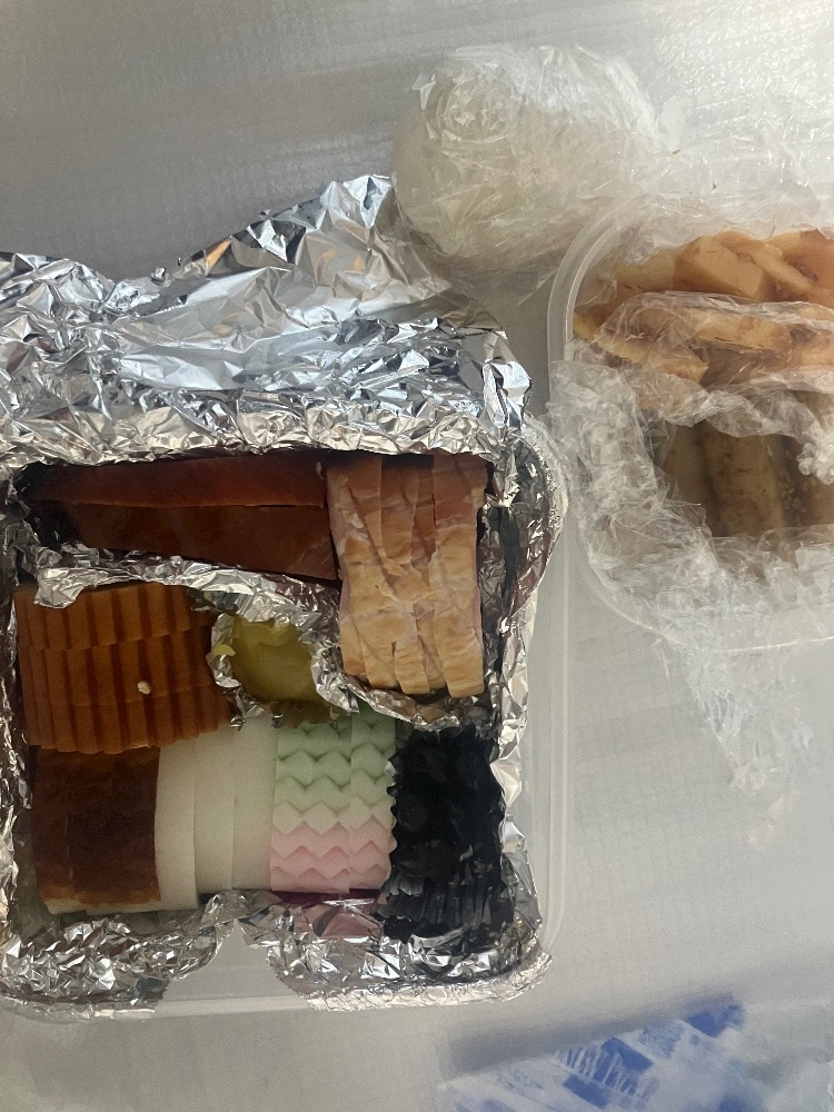 適当に私がよく食べてたおせち詰めてきたよーって笑
