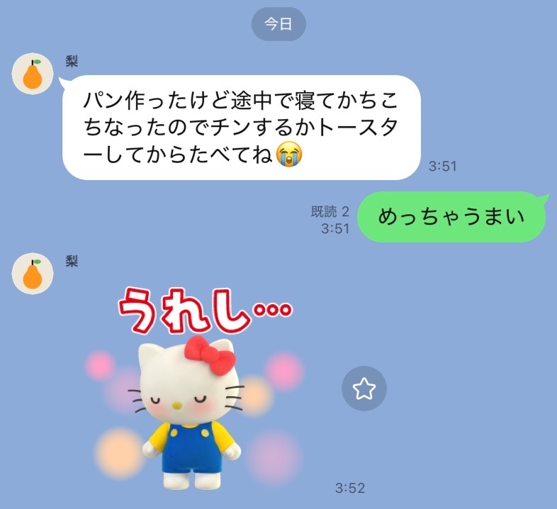 - こんにちはーーー!!きのうもありがとうございました☺️お姉ちゃんがパン焼いてた!すごない?