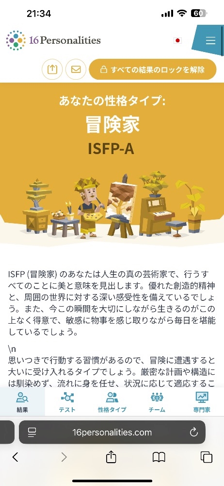 今日休みだってmbti診断したんですけど
