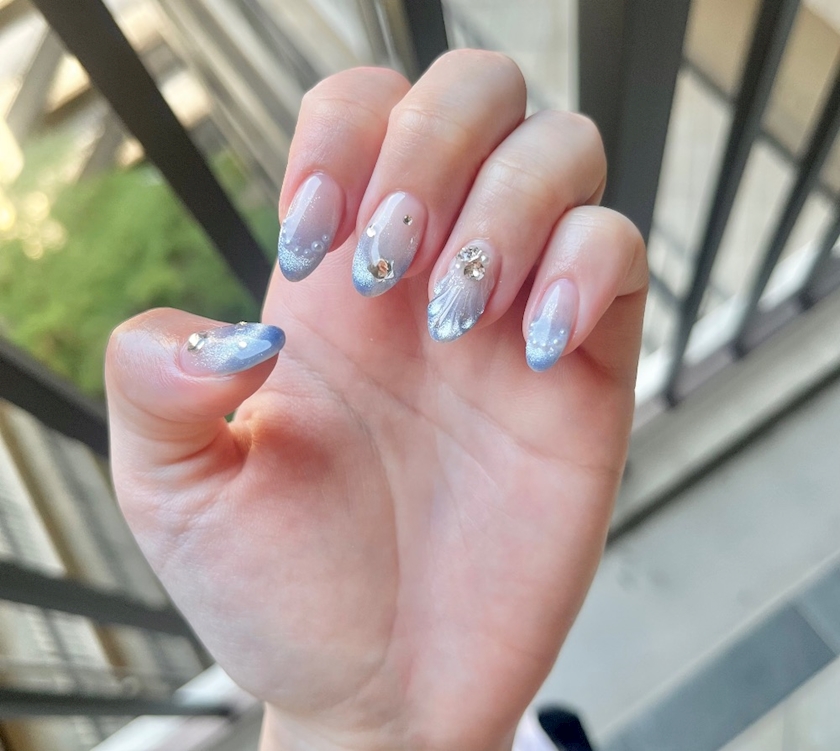 マーメイドをイメージされたネイルです!🧜♀️✨️𓇼𓈒𓐍𓈒𓂂𓏸
