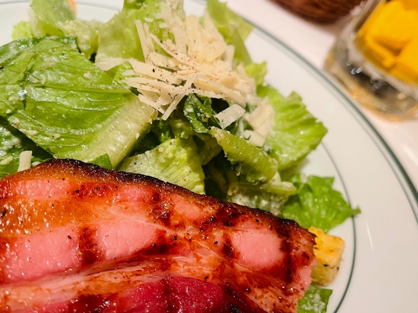 メインのステーキはほんの少ししか