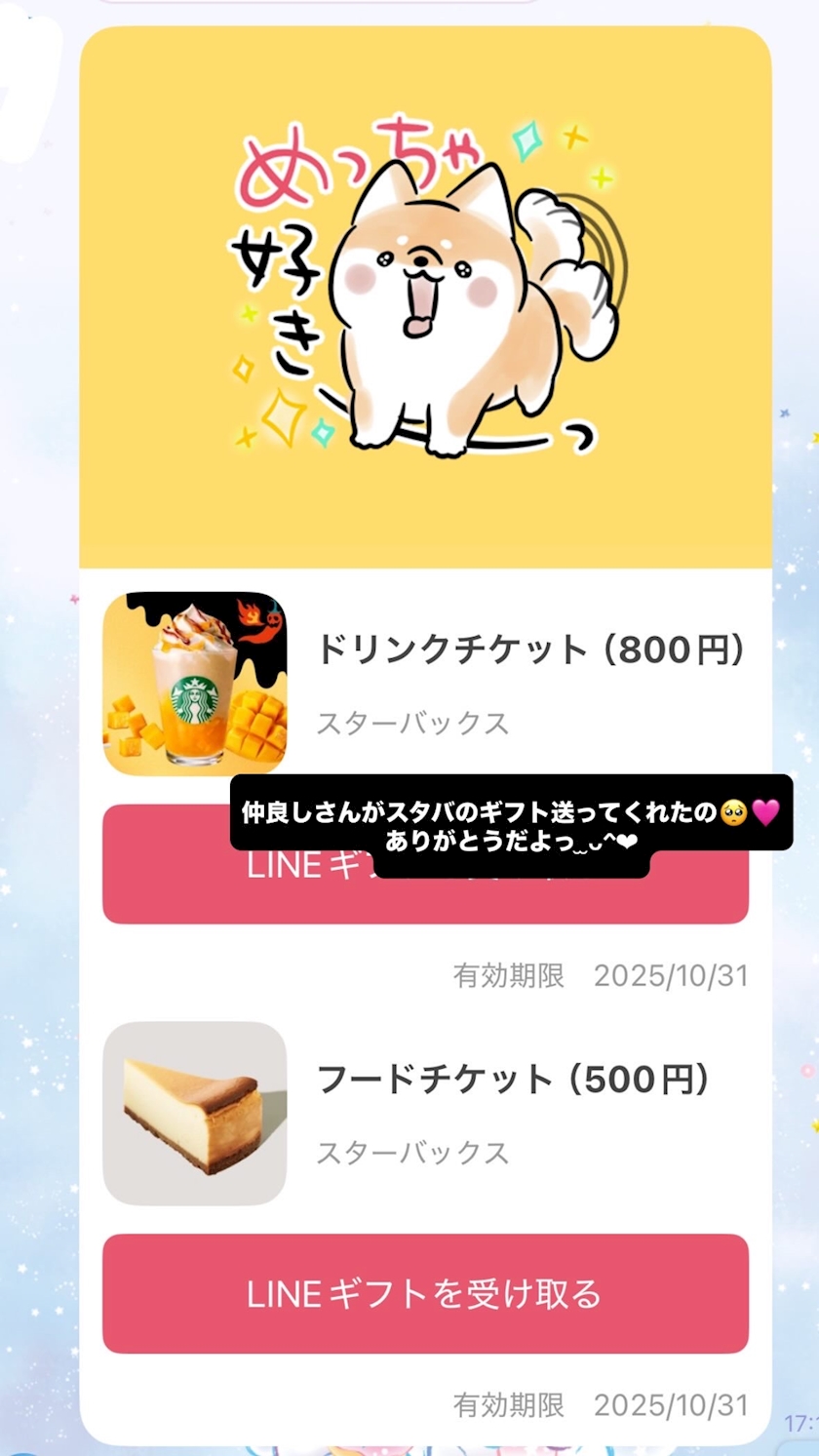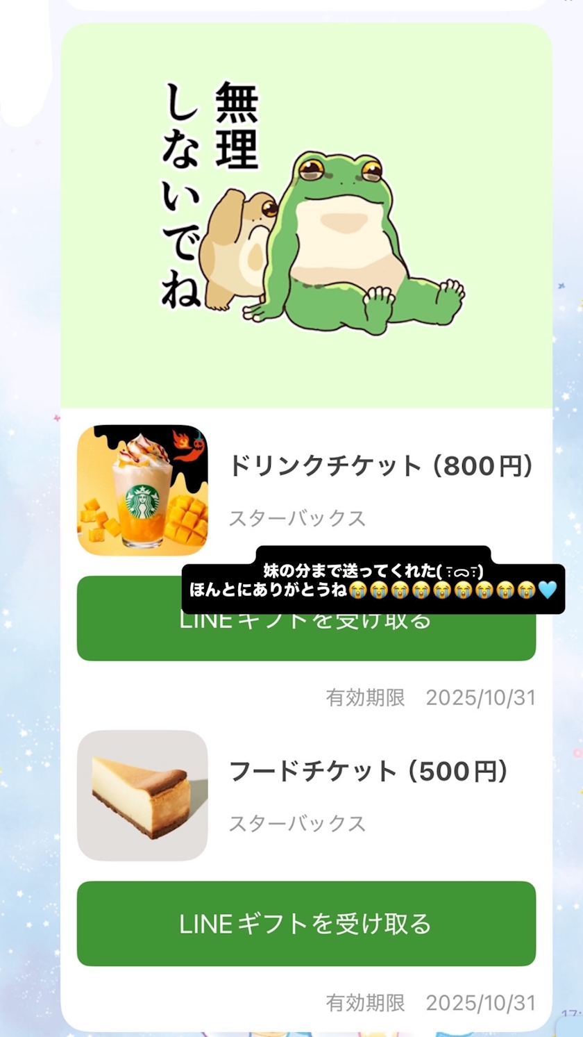 仲良しさんがひなと妹の分のスタバのギフトくれたの🤍