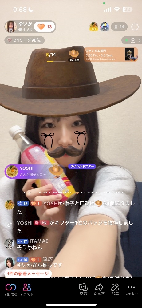 あっ、昨日の深夜に夜ご飯配信してたよっ!