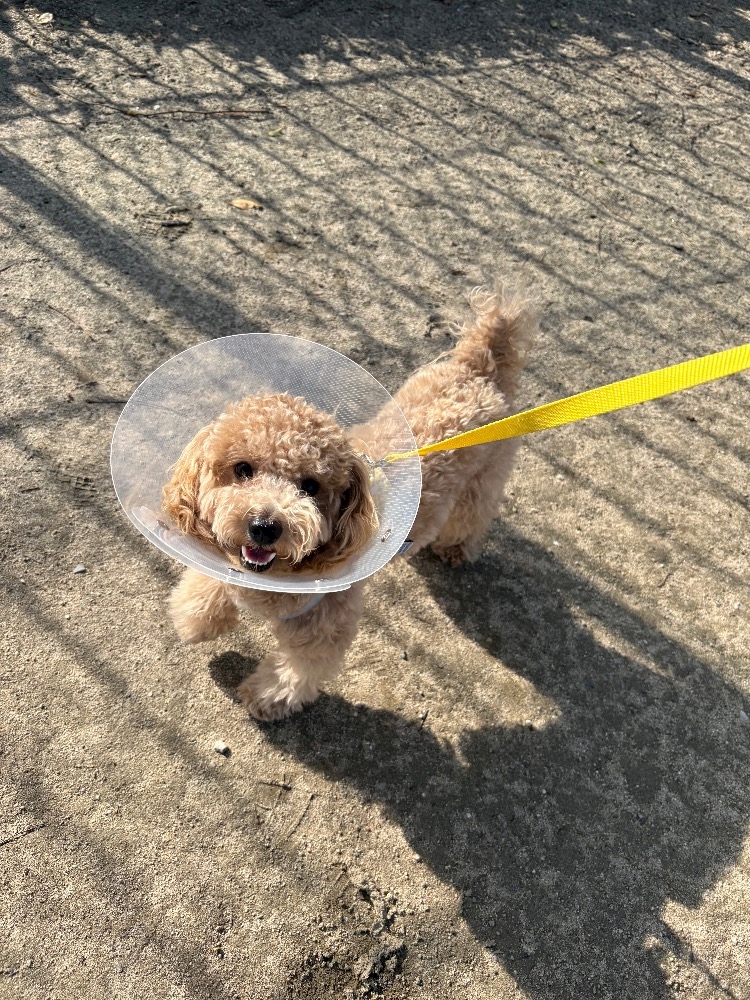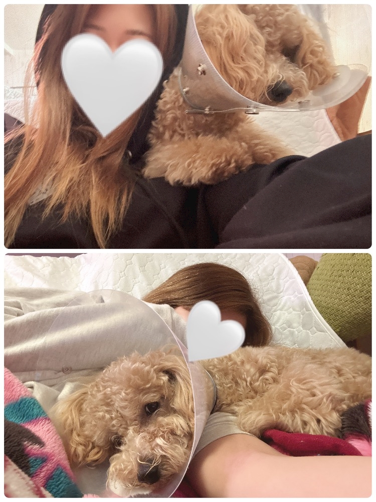 動きにくいし可哀想やけどエリザベスカラーつけてるぷぅちゃんを見れるのも今だけと思ったら愛おしい🥰
