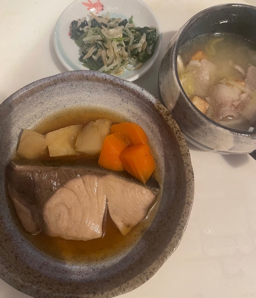 後は適当に豚汁とほうれん草ともやしのお浸しです🐷
