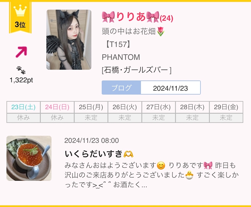 3位ありがとうございます🫶 - 🎀りりあ🎀 - PHANTOM・ファントム - 石橋のガールズバー