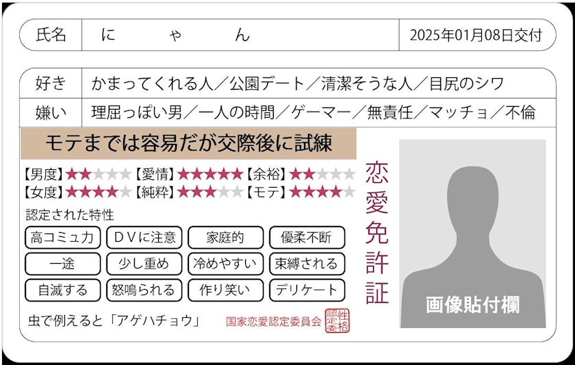ついでに恋愛免許証も!!